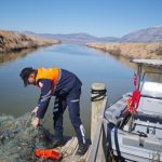 Bursa’da aç kalan su samuru yavrularıyla tekneye sığındı