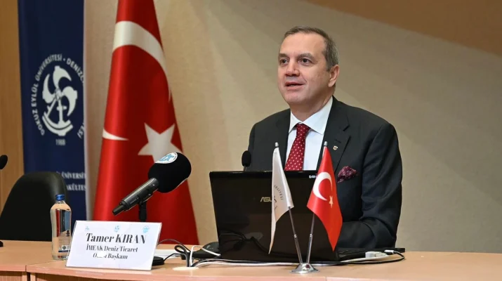Tamer Kıran, açılış konuşmalarının ardından “Yeni Ufuklar Güçlü Adımlar: Denizcilikte Vizyon ve Liderlik” konulu söyleşide üniversite öğrencilerine hitap etti.