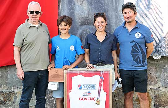 5 yıl öncesine kadar soyunma odası, çekek yeri bile olmayan bir kulübü Avrupa Şampiyonu yetiştiren bir tesis haline getiren Yalıkavak Yelken Kulübü Başkanı Ceyhun Üstüner ile Güvenç Ailesi’ne ve Azat Baykal’a da birer hatıra plaketi ile teşekkür edildi.