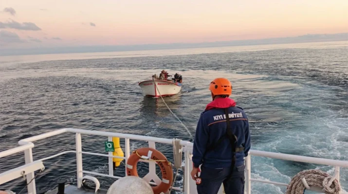 Arıza nedeniyle sürüklenen tekneye Kıyı Emniyeti ekipleri müdahale etti.