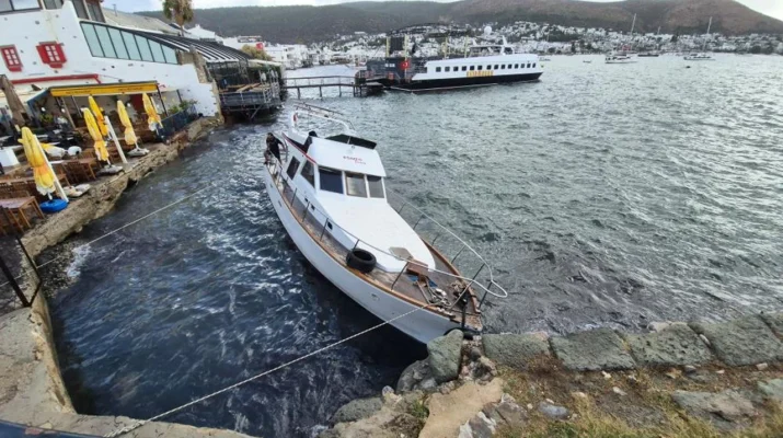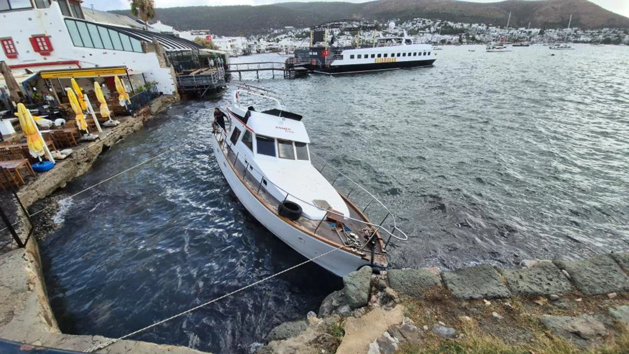 Muğla’nın Bodrum ilçesinde aralıklarla yağışla birlikte güneyli yönlerden rüzgar da etkili oldu. Kumbahçe Koyu’nda demirli 12 metre boyundaki tekne, halatının kopması sonucu bağlı bulunduğu tonozdan ayrıldı.
