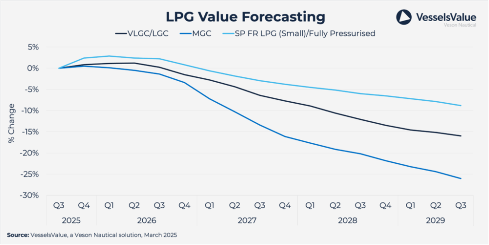 -VLGC kazançları kısa vadede güçlü ancak baskı artıyor: VLGC kazançları 2024 yılında ortalama 43.300 ABD doları/gün olarak gerçekleşti ve 2025 yılında yaklaşık 51.400 ABD doları/güne ulaşması bekleniyor. ABD ve Orta Doğu’daki hacim artışının desteğiyle 2026 yılı için olumlu bir görünüm söz konusu olsa da, yeni teslimatların hızlanmasıyla birlikte 2027 yılından itibaren piyasa dengesi baskı altında kalacak gibi görünüyor.