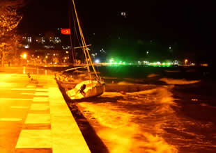 Erdek’te lodos felaketi: Tekneler karaya sürüklendi Balıkesir’in Erdek ilçesinde şiddetli lodos denizde büyük tahribata neden oldu. Bölgedeki çok sayıda tekne kayalıklara sürüklenerek ciddi hasar gördü. |