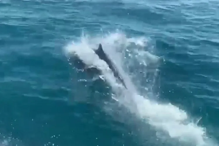 İl Emniyet Müdürlüğü Deniz Liman Şubesi ekipleri, Akdeniz’de rutin devriyeye çıktı. Bir kaç mil açıktaki devriye ekibinin yanında beliren yunuslar, polislere eşlik etti. Yunusların tekneyle birlikte ilerlediği anlar renkli görüntüler oluşturdu. Mersin İl Emniyet Müdürlüğü o görüntüleri, “Deniz Limanı Şube Müdürlüğü ekiplerimiz, Akdeniz’in eşsiz maviliklerinde devriye görevini bu kez sevimli yunus dostlarımız eşliğinde gerçekleştirdi. Mavinin kalbinde, güvenli yarınlar için her zaman görevdeyiz” notuyla paylaştı.