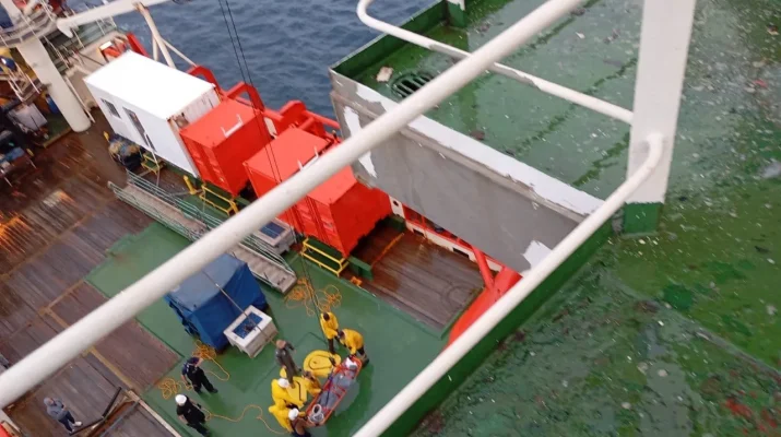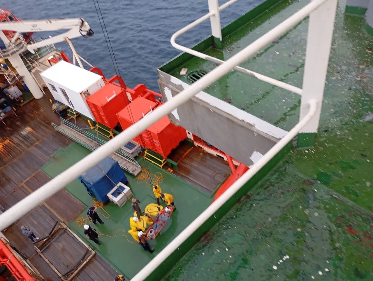 Denizcilik Genel Müdürlüğü’nden yapılan açıklamada, “Hint Okyanusu’nda seyreden MANTA MERVE gemisinde yüksekten düşen usta gemicimiz E.B.’nin tahliyesi Acil Durum Haberleşme ve Koordinasyon Daire Başkanlığı (AAKKM) koordinesinde, UK JRCC ve USCG iş birliğiyle uzun uğraşlar sonucu Diego Garcia Adası UK Askeri Destek Gemisiyle sağlandı. Adadan özel uçakla ana karaya sevki beklenmektedir” denildi.