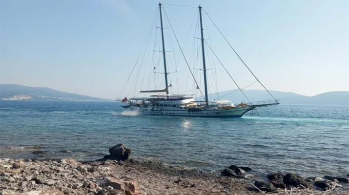 Muğla’da Eskiçeşme Mahallesi Haremtan Burnu önlerinde seyreden “Aegean Clipper” adlı yelkenli tekne karaya oturdu.