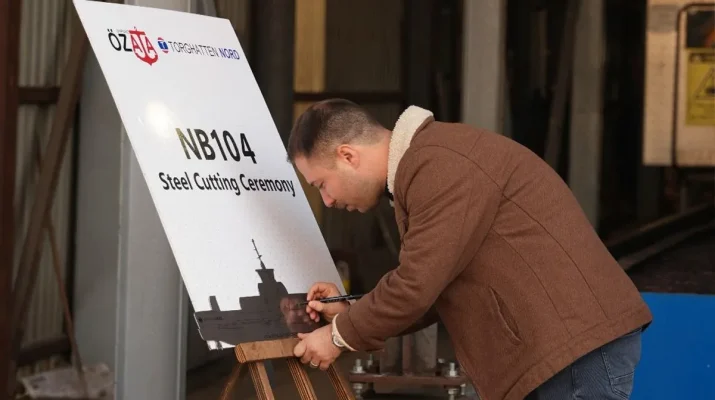 Norveçli Torghatten Nord için inşa edilen 60 araçlık çift taraflı elektrik/hibrit feribot projesine yeni bir gemi daha eklendi. Özata Tersanesi, Torghatten Nord ile imzaladığı iki gemilik sözleşme sonrasında üçüncü kardeş gemiyi de duyurdu. İlk iki gemi için sözleşme Eylül 2024’te imzalanmış, NB101’in sac kesimi Kasım 2024’te, NB102’ninki ise Ocak 2025’te yapılmıştı. Şimdi ise filoya üçüncü gemi NB104 ekleniyor.