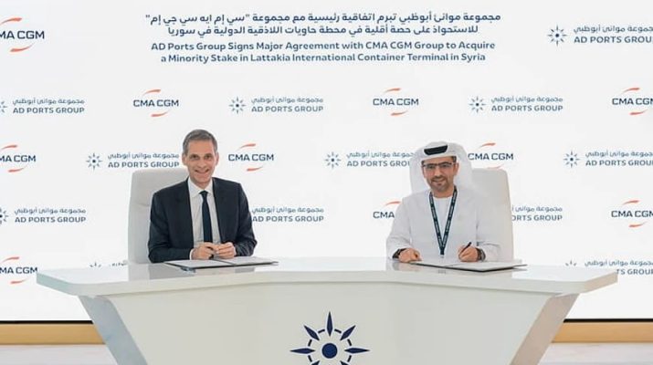 Abu Dabi liman, lojistik ve ticaret grubu AD Ports Group, Fransa merkezli CMA CGM Group ile Lazkiye Uluslararası Konteyner Terminali’nin (LICT) yüzde 20 hissesini 81 milyon AED (22 milyon $) karşılığında satın almak için ortak girişim ve hissedarlar anlaşması imzaladı.