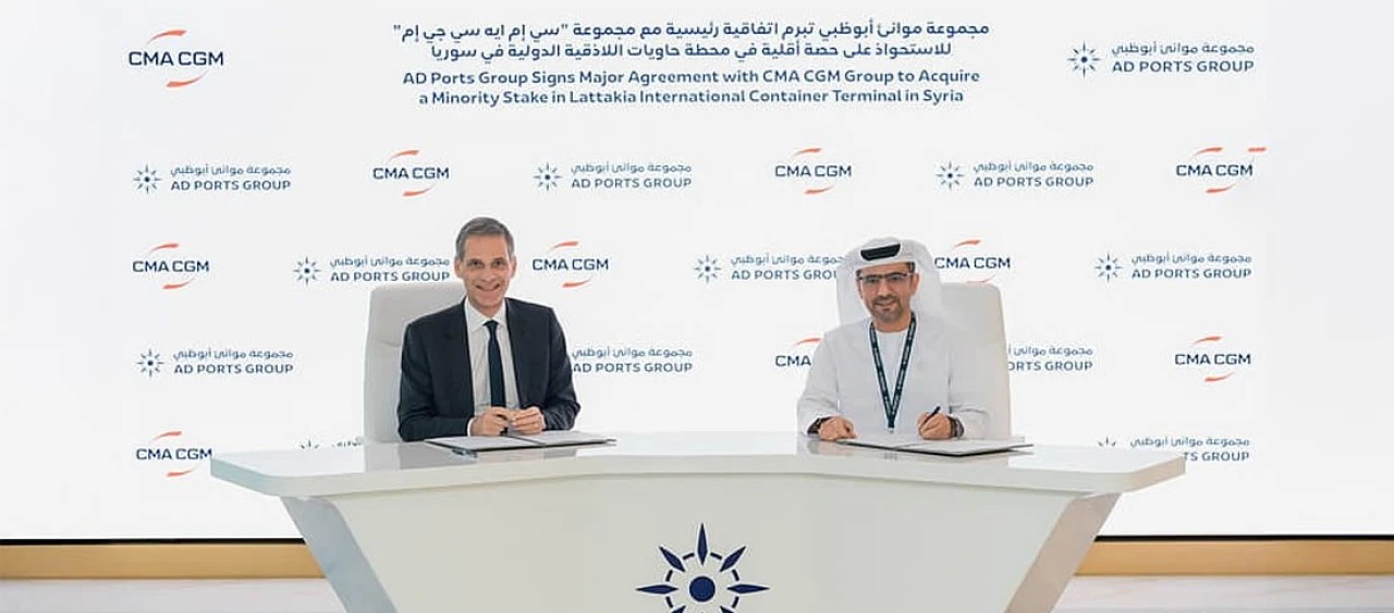 Abu Dabi liman, lojistik ve ticaret grubu AD Ports Group, Fransa merkezli CMA CGM Group ile Lazkiye Uluslararası Konteyner Terminali’nin (LICT) yüzde 20 hissesini 81 milyon AED (22 milyon $) karşılığında satın almak için ortak girişim ve hissedarlar anlaşması imzaladı.