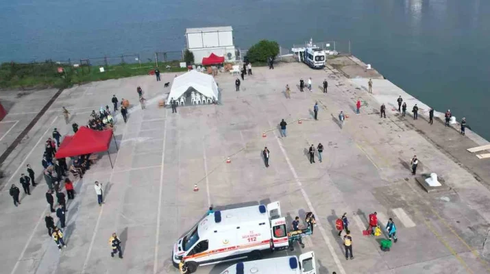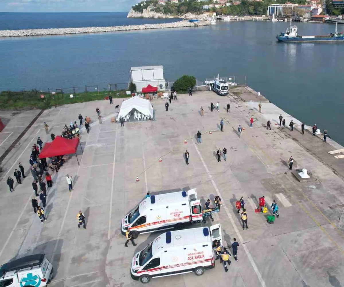 Zonguldak’ta İl Sağlık Müdürlüğü koordinasyonunda, Bolu İl Sağlık Müdürlüğü, AFAD, emniyet, jandarma ve belediye ekiplerinin katılımıyla “denizde gemi kazası” senaryolu geniş kapsamlı bir afet tatbikatı düzenlendi.
