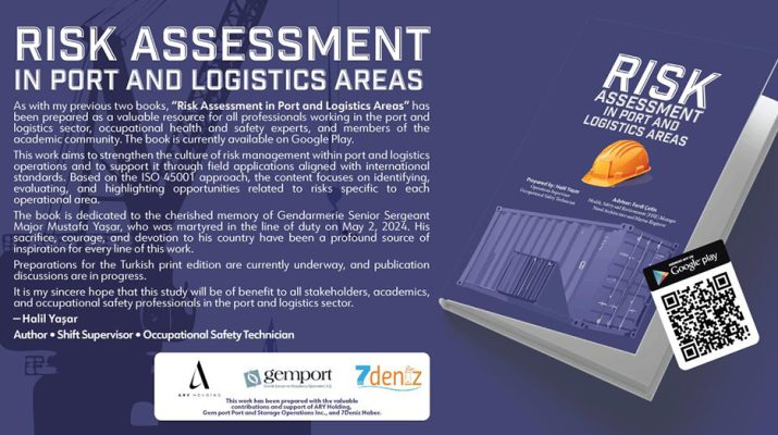 Liman ve lojistik sektöründe çalışan profesyoneller, iş sağlığı ve güvenliği uzmanları ile akademik camia için kapsamlı bir kaynak olarak hazırlanan “Liman ve Lojistik Sahalarında Risk Değerlendirmesi” kitabı, Google Play platformunda erişime açıldı. Yazar Halil Yaşar tarafından kaleme alınan eser, sektörde risk yönetimi kültürünü güçlendirmeyi ve ISO 45001 standartlarıyla uyumlu saha uygulamalarını desteklemeyi hedefliyor.