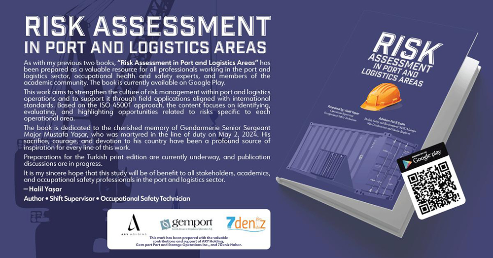 Liman ve lojistik sektöründe çalışan profesyoneller, iş sağlığı ve güvenliği uzmanları ile akademik camia için kapsamlı bir kaynak olarak hazırlanan “Liman ve Lojistik Sahalarında Risk Değerlendirmesi” kitabı, Google Play platformunda erişime açıldı. Yazar Halil Yaşar tarafından kaleme alınan eser, sektörde risk yönetimi kültürünü güçlendirmeyi ve ISO 45001 standartlarıyla uyumlu saha uygulamalarını desteklemeyi hedefliyor.