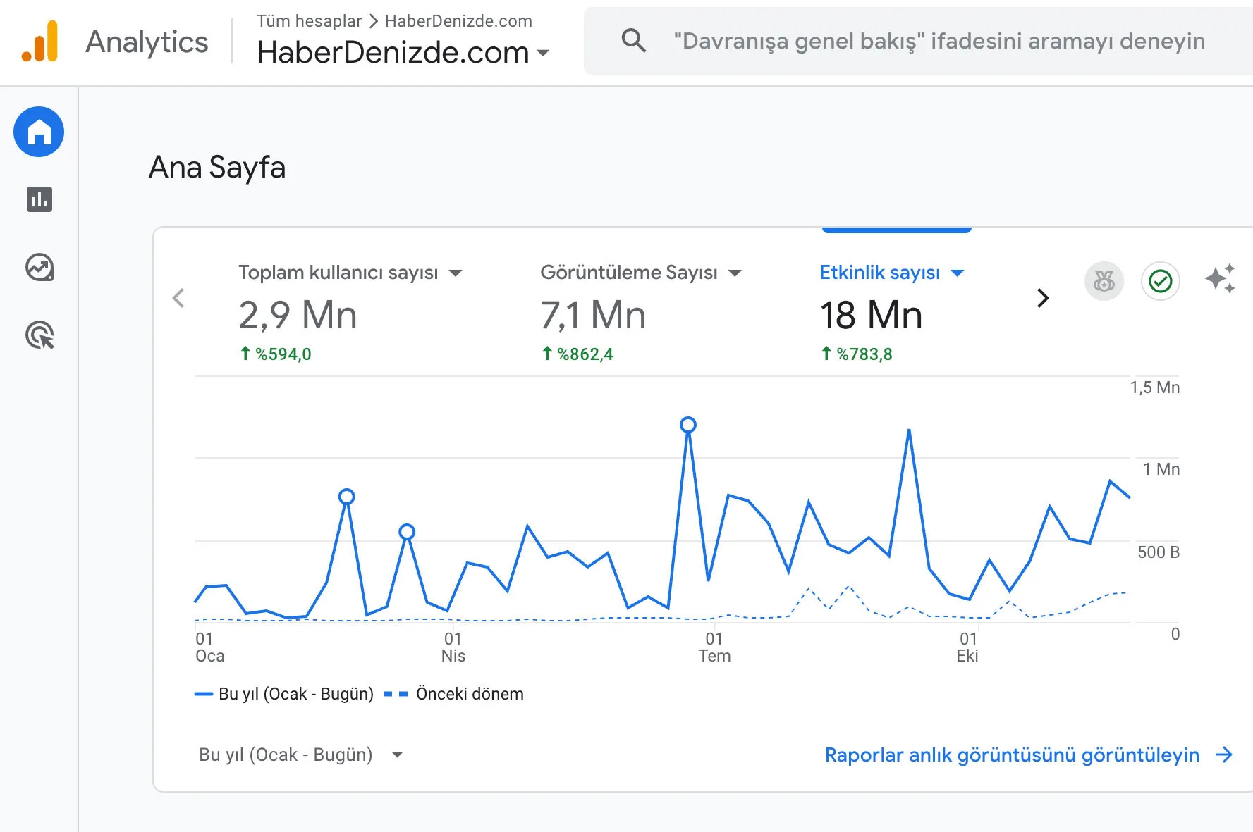 Google Analytics verilerine göre, HaberDenizde.com’u 1 Ocak 2025 ile 27 Kasım 2025 tarihleri arasında 2.9 milyon tekil kullanıcı ziyaret ederek, 7.1 milyon kere haber okudu ve çoklu girişler dahil toplam 18 milyon kere etkileşimde bulundu.