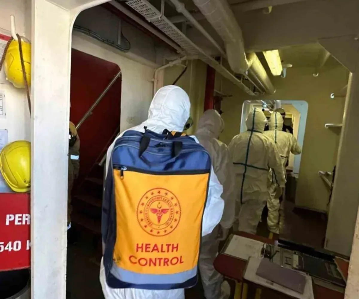 Liman birimleri hızla harekete geçirildi; hasta mürettebat, bulaşıcı hastalıklara uygun donanımlı 112 ambulansı ile Antalya Eğitim ve Araştırma Hastanesi’ne sevk edildi.