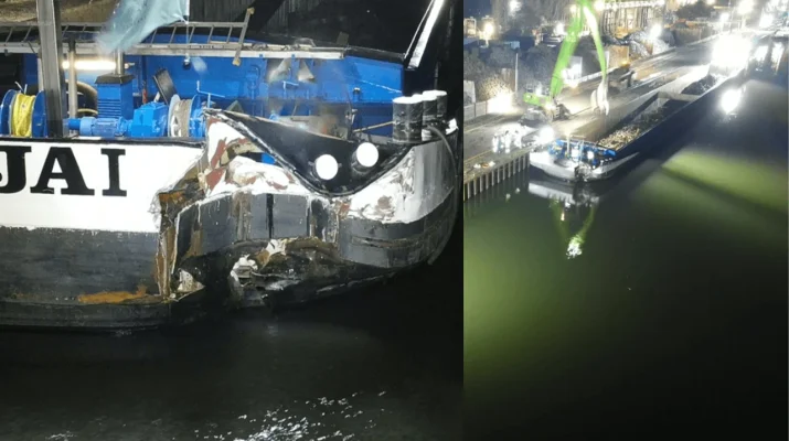 lmanya’da meydana gelen bir çarpışma sonucu hurda metal taşıyan bir nehir yük gemisi hasar gördü. Çarpmanın etkisiyle geminin baş kısmında ciddi yapısal hasar oluşurken, gövdede meydana gelen çatlak nedeniyle ön bölüme su girdi ve geminin enerji sistemi geçici olarak devre dışı kaldı.