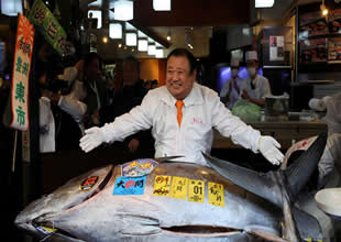 Tokyo’da mavi yüzgeçli orkinos 3,24 milyon dolara satıldı Tokyo’daki Toyosu balık pazarında 2026 yılının ilk müzayedesinde, 243 kiloluk dev bir mavi yüzgeçli orkinos rekor kırarak 3,24 milyon dolara satıldı. |