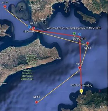Rotayı harita üzerinden canlandıran mahkeme, sarıyla çizilen güzergahın geçiş planı olmasına rağmen geminin kırmızı ile çizilen rotayı izleyerek karaya oturduğunu bildirdi.