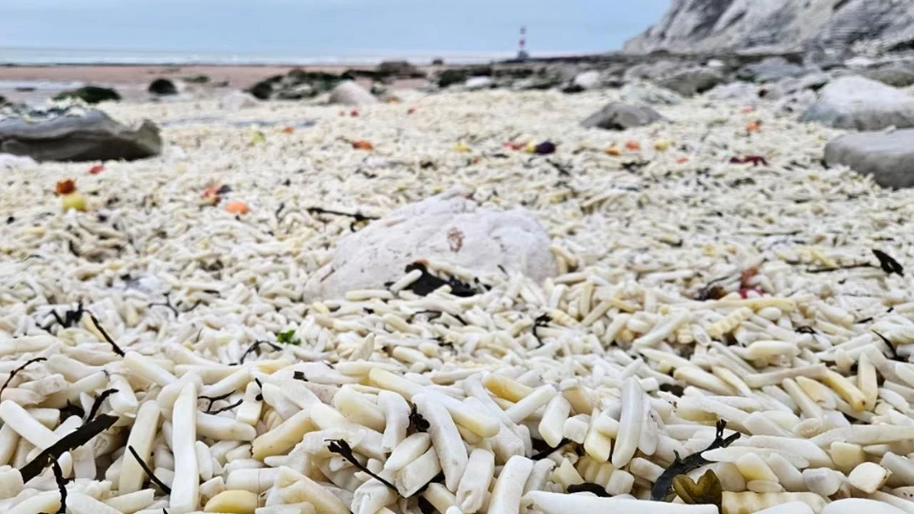 East Sussex kıyılarındaki temizlik operasyonu Salı günü başlarken, bölge sakinleri sahilin görüntüsünü “tropikal bir adadaki altın sarısı kumlar”a benzetti. Ancak bu görüntünün ardında, 1,5 metre derinliğe kadar ulaşan çiğ patates ve soğan yığınları olduğu anlaşıldı.