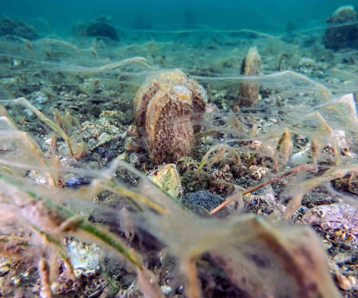 Sarı, İzmit Körfezi girişinde Eskihisar Kalesi dibinde, kıyı dolgularından kendini kurtarabilmiş küçücük bir alanda da hem deniz çayırı hem oldukça yoğun pina popülasyonuna rast geldiklerini vurgulayarak, “Neredeyse her metrekarede 3-4 pina var” dedi.