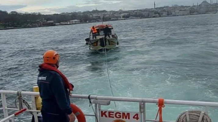 İçerisinde 3 kişi bulunan 9 metre boyundaki tekne, KEGM-4 hızlı tahlisiye (can kurtarma) botuyla yedeklenerek Harem’de emniyete alındı.