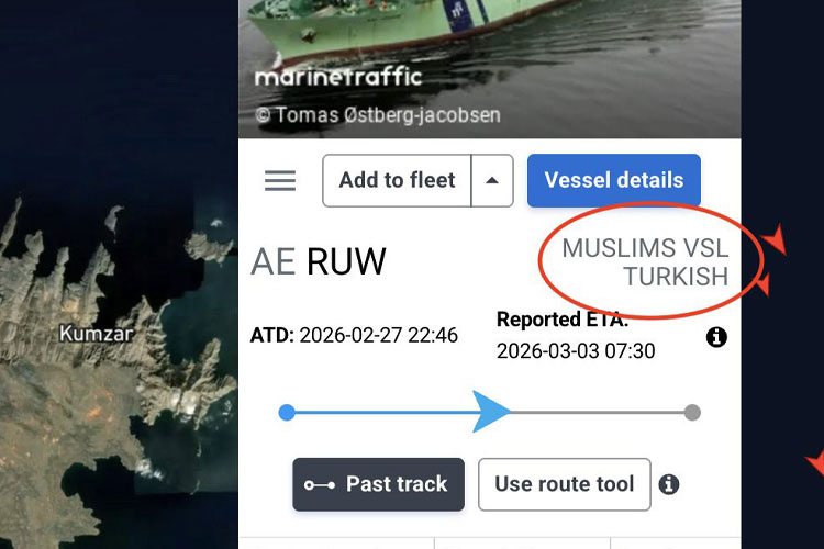 Birleşik Arap Emirlikleri’ndeki (BAE) Ruwais Limanı’ndan (AE RUW) Hindistan’ın Kandla Limanı’na (IN IXY) doğru hareket eden İstanbul merkezli Pascogas’a ait tanker, savaş tehlikesini yaşandığı Hürmüz Boğazı’nda varış limanını “MUSLIMS VSL TURKISH” olarak değiştirdi.