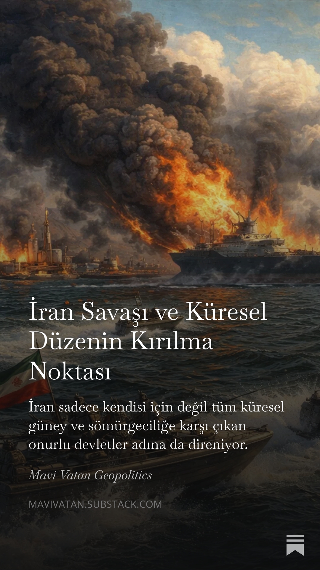 Sonuç olarak İran’ın kısa sürede teslim olması beklenmemelidir. Hürmüz krizi yalnızca petrol fiyatlarını etkileyen bir piyasa dalgalanması değil, küresel enerji sisteminin ana lojistik damarına yönelmiş gerçek bir arz şokudur. Bu nedenle İran savaşı yalnızca bölgesel bir çatışma olarak görülemez. Enerji piyasaları, finans sistemi ve küresel güç dengeleri üzerinde derin etkiler yaratabilecek tarihsel bir kırılma noktasıdır. Bugün İran’da yaşananlar da yalnızca bir savaş değil, Batı hegemonyasının çözülmeye başladığı ve dünyanın giderek çok kutuplu bir düzene yöneldiği yeni bir dönemin sancılı habercisidir. İran sadece kendisi için değil tüm küresel güney ve sömürgeciliğe karşı çıkan onurlu devletler adına da direniyor.