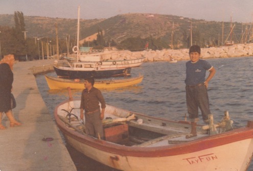 Ahmet Amca’nın lakabının öyküsünü de oğlu Hüsamettin ağabeyden öğreniyoruz: “Tayfun Ahmet lakabını Bozkurt İğdebeli vermiş babama. Bedalan tarafında batmışlar babamlar, üç kişi amcamla birlikte. Soğuk bir havada frengi delikleri dahi donmuş, güverteye dolan su boşalmıyormuş bir türlü. Bedalan taraflarında sulu kar yağan Karayel fırtınasında batmışlar nihayetinde. Fakat kıyıya yakın bir yerde… Sandala omuz vermiş babam hepten batmasın diye. Mustafa amcam kayalıklardan bağırıyormuş Gel Ahmet gel, boğulacaksın ben kayık yaptıracağım sana söz diye bağırıyormuş… Gel zaman git zaman, bir gün sandalı yeni boyamışlar küçük limanın oradaki çakıllıkta. Sabah kalktığında bir de bakıyor ki Babam kayığın başında Tayfun yazıyor! Bozkurt Bey yazmış meğer. Hem Teknenin adı hem de Babamın lakabı olarak kaldı ‘Tayfun Ahmet’ o günden sonra…