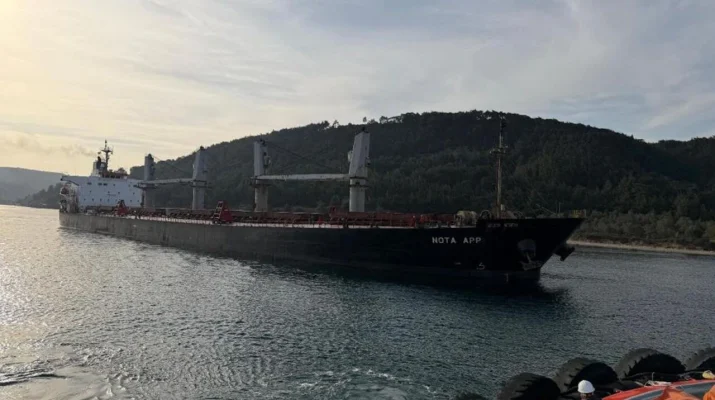 Rusya’dan Mısır’a giden Panama Bayraklı 189 metre boyundaki ‘NOTA APP’ isimli 51 bin 258 ton tahıl yüklü dökme yük gemisi dün Çanakkale’nin Eceabat ilçesi Kilitbahir köyü açıklarında makina arızası yaptı. Geminin kaptanı, durumu telsizle Çanakkale Boğazı Gemi Trafik Hizmetleri Merkezi Müdürlüğüne bildirdi. Makina arızası ardından sürüklenmeye başlayan gemi bir süre sonra karaya oturdu. Kıyı Emniyeti Genel Müdürlüğüne ait ‘KURTARMA-21’ romörkörü ve ‘KEGM-8’ botu bölgeye sevk edildi. Boğazdan geçiş yapan diğer gemiler de arızayla ilgili bilgilendirildi.