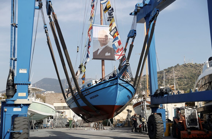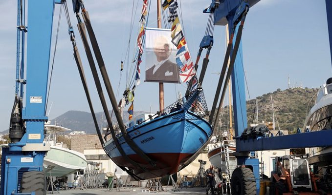 Törenin ardından gazetecilere açıklama yapan Baş, “Mavi Boncuk” olarak nitelediği tekneyi Bodrum’da ustaların ustası olarak bilinen merhum Ziya Güvendiren’in 1962’de kendisine yaptığını, 1981’de onu aldıktan sonra “Şafak” ismini “Aksona” olarak değiştirdiğini söyledi.