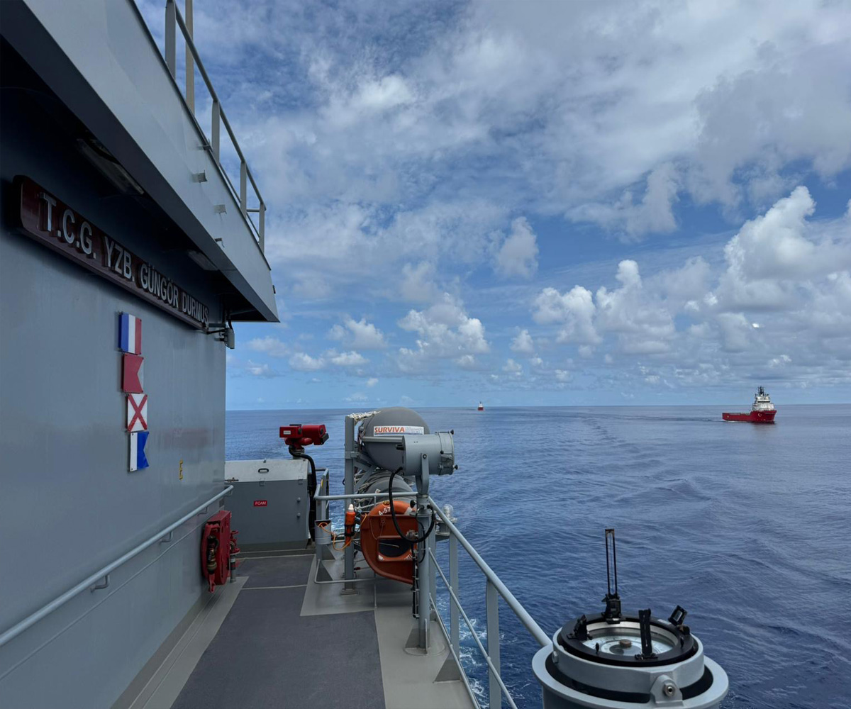 Somali Türk Deniz Görev Grubu; Çağrı Bey sondaj gemisi ile Korkut, Altan, Sancar destek gemilerine refakat ve karakol desteği sağlıyor.