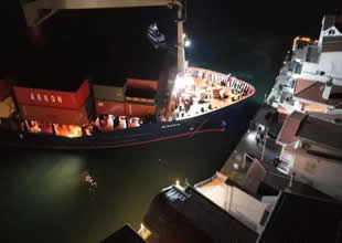 İstanbul Boğazı’nda gemi yalıya metreler kala karaya oturdu İstanbul Boğazı’nda dümen arızasından kaynaklanan nedenle Sarıyer, Yeniköy açıklarında karaya oturan ve yalıya metreler kala duran konteyner gemisi, uzun süren çalışmaların ardından kurtarıldı. |
