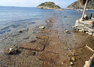 Deniz çekildi, adaya yürüyerek gidiyorlarMuğla’nın Bodrum ilçesinde deniz suyunun çekilmesiyle 3 bin 500 yıllık Myndos kentine giden ‘Kral Yolu’, gün yüzüne çıktı. DENIZ HABER