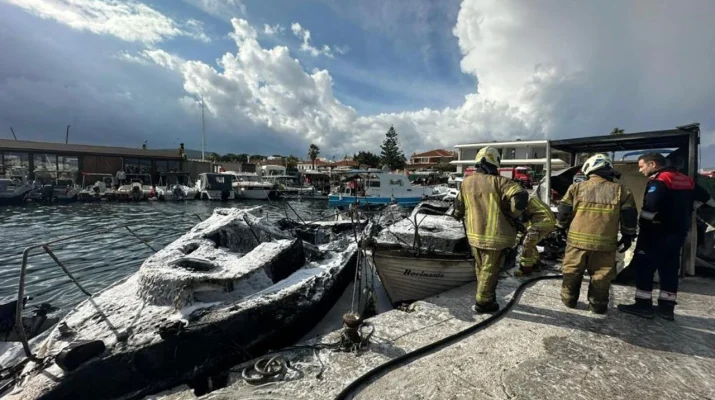 İzmir’in turistik ilçesi Çeşme’de, Ilıca Yıldızburnu Plajı’nda demirli bir teknede çıkan yangın kısa sürede diğer özel teknelere de sıçradı. Henüz çıkış nedeni belirlenemeyen yangın