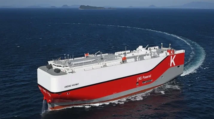 Japon denizcilik şirketi Kawasaki Kisen Kaisha (K Line), çift yakıtlı tahrik sistemine sahip yeni bir otomobil taşıyıcı gemisini (PCTC tipi) hizmete aldı. Imabari Tersanesi’nde