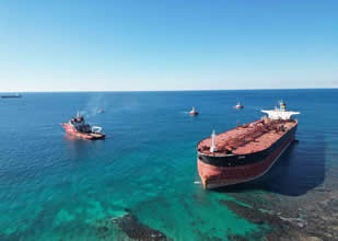 Bozcaadada’da karaya oturan tanker kurtarıldı
