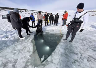 İSTE’li akademisyen ve öğrenciler buzla kaplı Çıldır Gölü’ne daldı