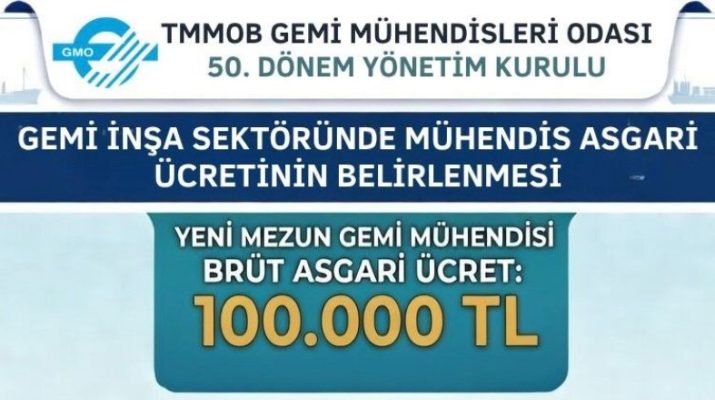 Gemi Mühendisleri Odası’ndan Asgari Ücret Tavsiyesi: 100 Bin TLTMMOB Gemi Mühendisleri Odası, gemi inşa sektöründe mühendislik hizmetlerinin niteliğinin korunması ve sürdürülebilirliğin sağlanması amacıyla yeni