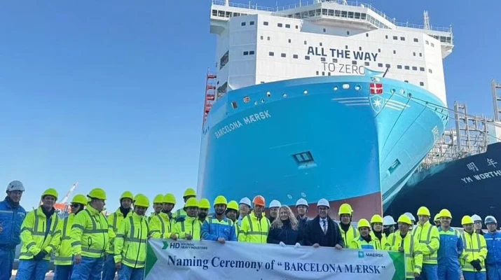 Danimarkalı denizcilik grubu A.P. Moller – Maersk, HD Hyundai Heavy Industries’den sipariş edilen çift yakıtlı yeni gemi serisinin altıncı ve son gemisi olan “Barcelona